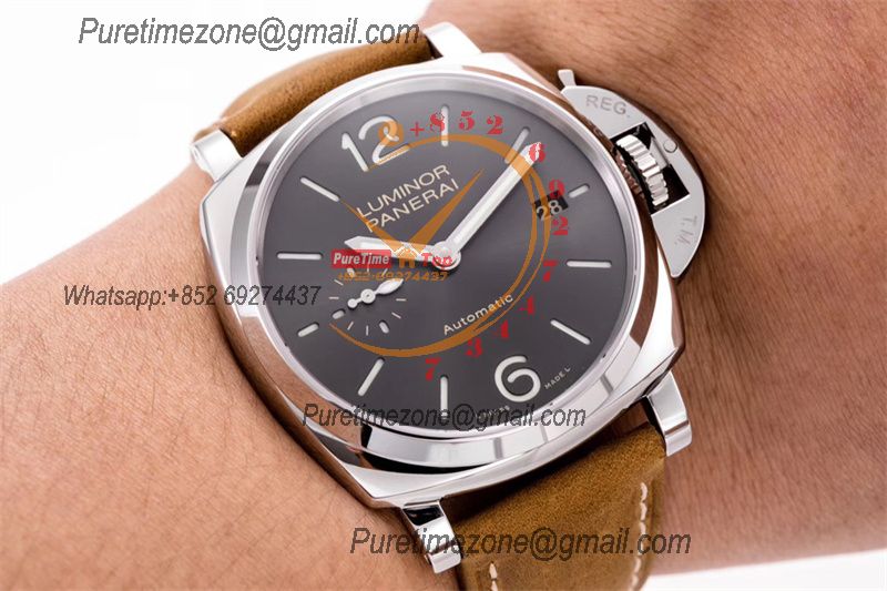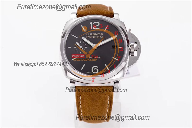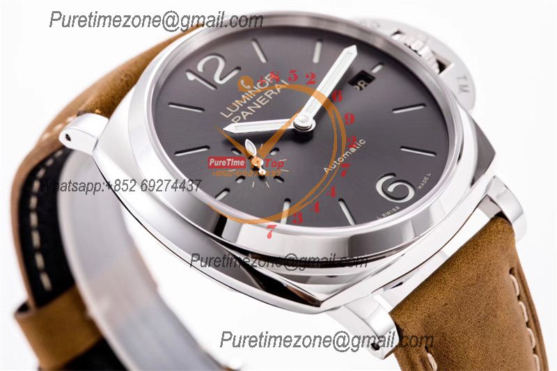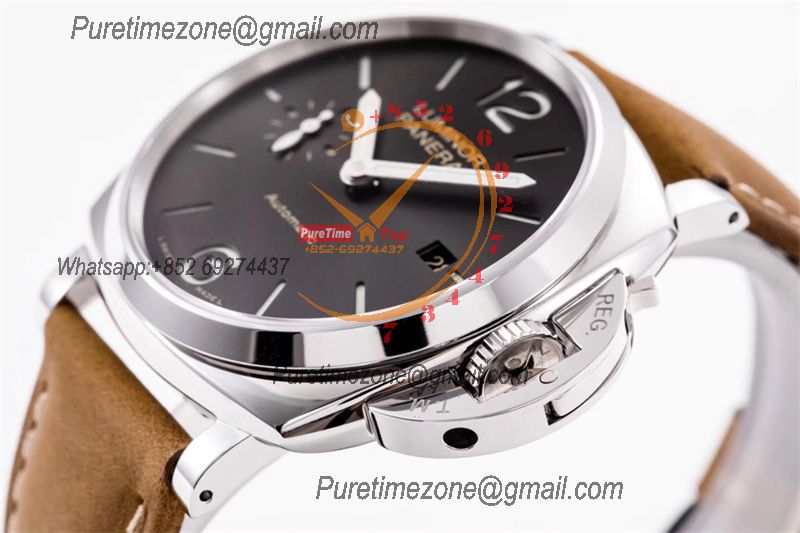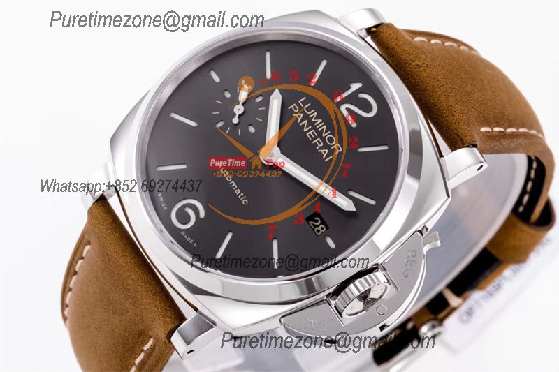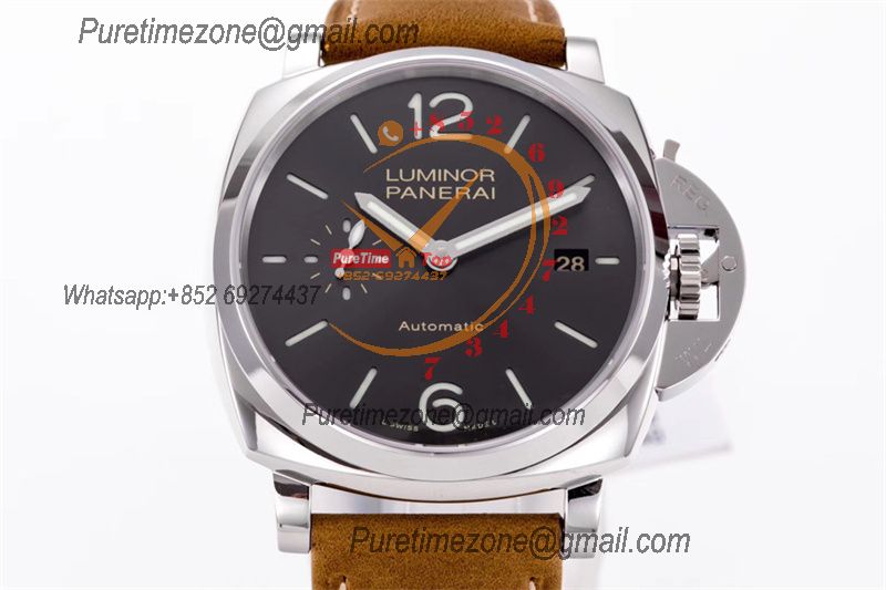 PAM00088 R Luminor GMT OP VIII Automatic Mens Watch 44mm VSF 1:1 Best Edition on Brown Leather Strap
