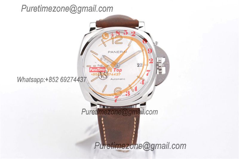 PAM00088 R Luminor GMT OP VIII Automatic Mens Watch 44mm VSF 1:1 Best Edition on Brown Leather Strap