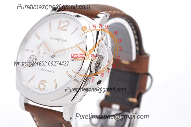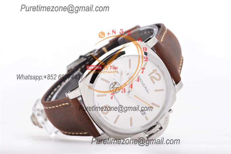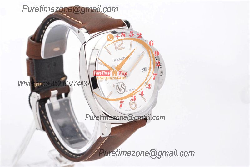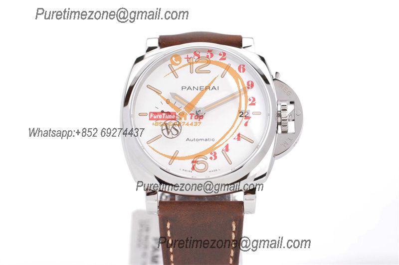 PAM01046 Luminor Due OP AXXXIV Automatic Mens Watch VSF 42mm Steel Case Best Edition White Dial on Brown Asso Strap