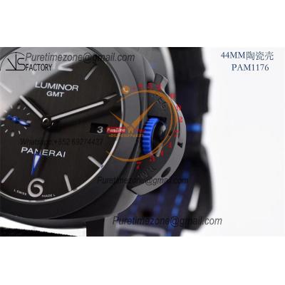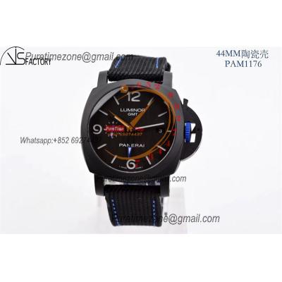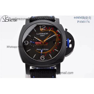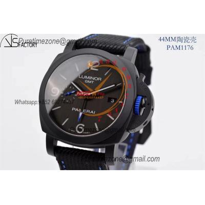 Home Panerai Luminor PAM01176 Luminor GMT Bucherer P9001 Automatic Mens Watch Best Edition VSF 44mm Ceramic Case Black Dial Nylon Strap