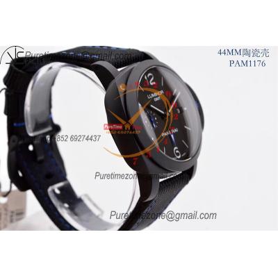 PAM01176 Luminor GMT Bucherer P9001 Automatic Mens Watch Best Edition VSF 44mm Ceramic Case Black Dial Nylon Strap