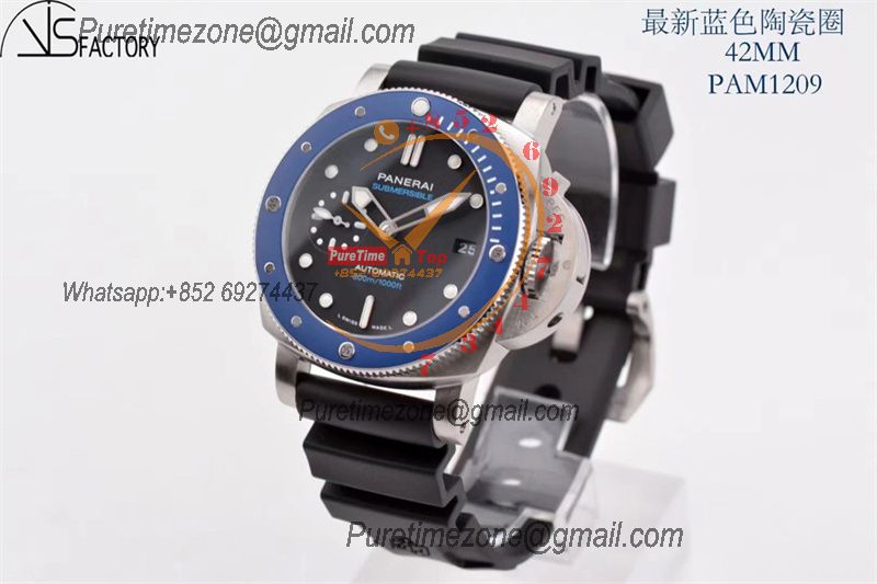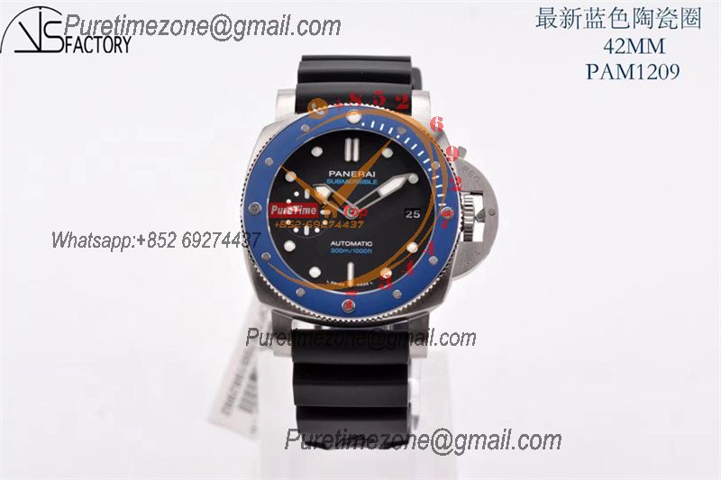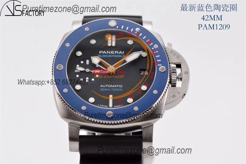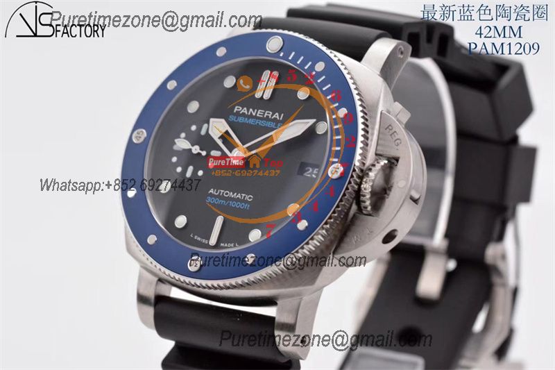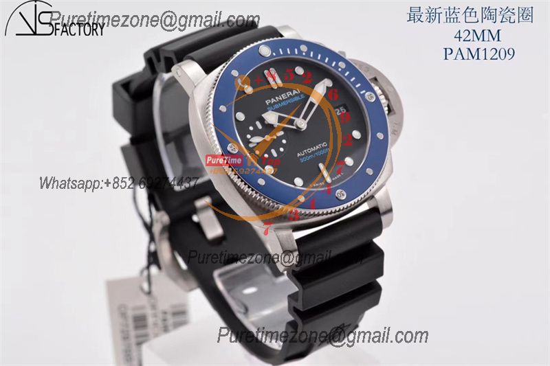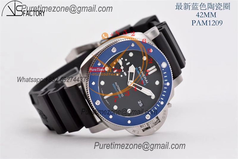 PAM01209 Luminor Submersible OP AXXXIV Automatic Mens Watch 42mm Blue Ceramic Bezel VSF 1:1 Best Edition Black Rubber