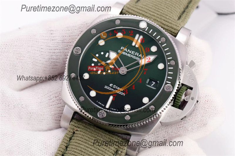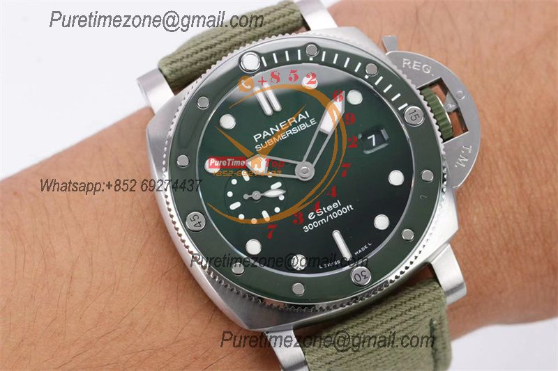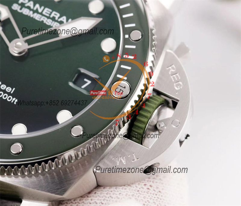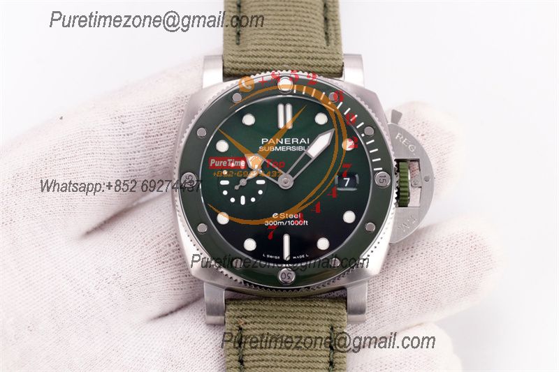 Home Panerai Luminor Submersible PAM01287 Submersible QuarantaQuattro ESteel Verde Smeraldo P900 Automatic Mens Watch VSF Best Edition Green DIal Nylon