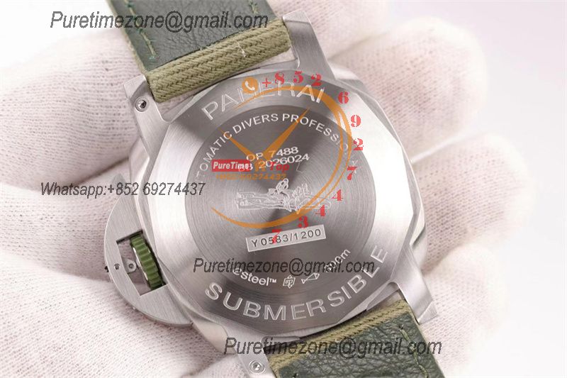 PAM01055 Luminor Submersible Verde Militare P900 Automatic Mens Watch VSF 42mm 1:1 Best Edition on Green Rubber Strap
