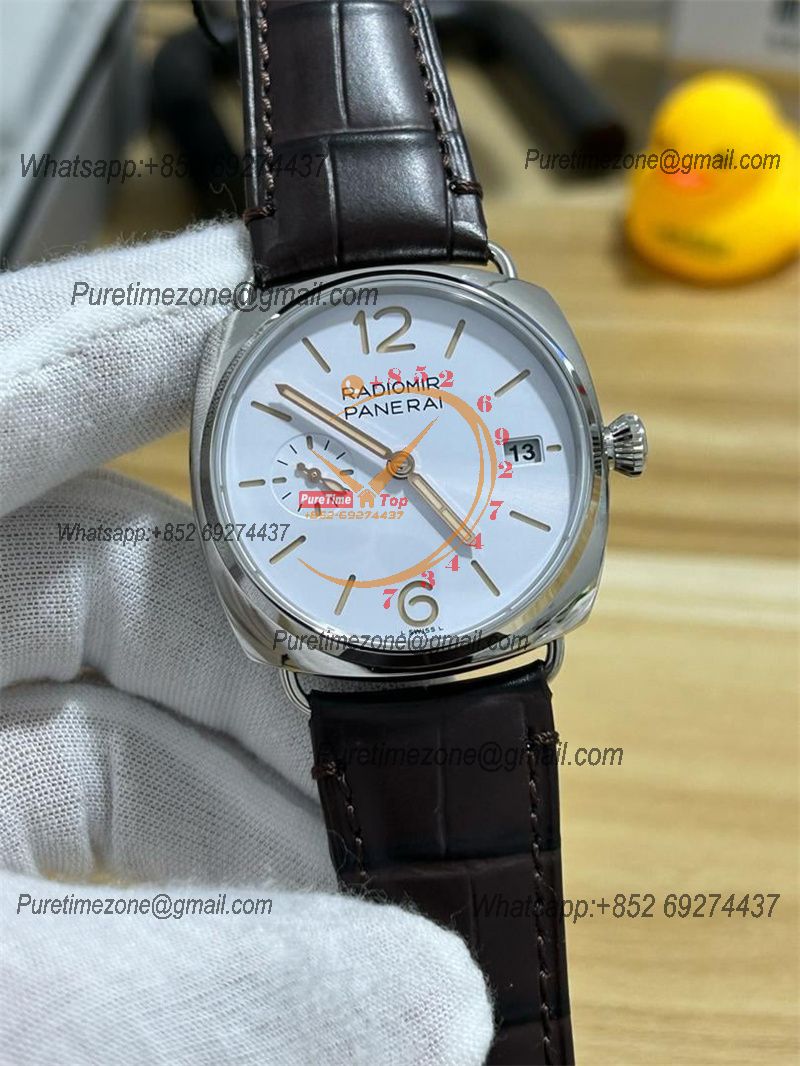Home Panerai Radiomir PAM01292 Radiomir Quaranta P900 Automatic Mens Watch 40mm VSF 1:1 Best Edition White Dial Brown Leather Strap