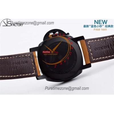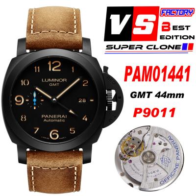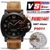 PAM01441 Luminor GMT Ceramic P9011 Automatic Mens Watch VSF 1:1 Best Edition Black Dial Brown Asso Strap