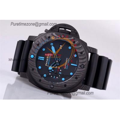 PAM00979 Luminor Submersible Carbotech P9010 Automatic Mens Watch VSF Best Edition Carbon Dial Rubber Strap