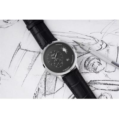 PanoMaticLunar MoonPhase A93-02 Automatic Mens Watch 1-90-02-43-32-05 AIF Steel Black Dial Leather Best Edition
