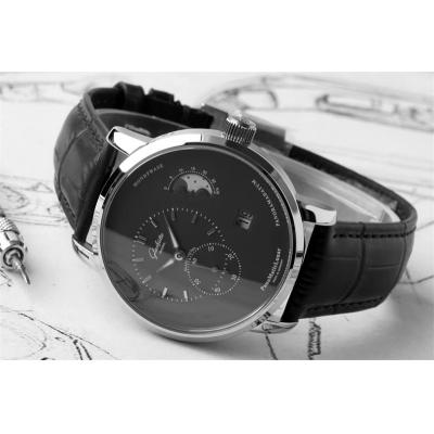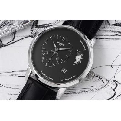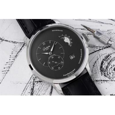 Home Glashutte Original PanoMaticLunar MoonPhase A93-02 Automatic Mens Watch 1-90-02-43-32-05 AIF Steel Black Dial Leather Best Edition