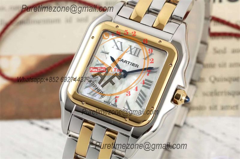 Panthère Medium Model W2PN0007 Ronda Quartz Womens Watch Best Edition AF YG 27mm MOP Dial SS Bracelet