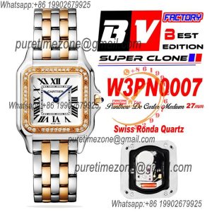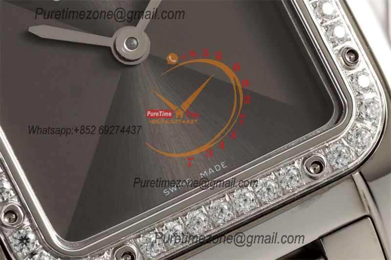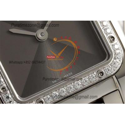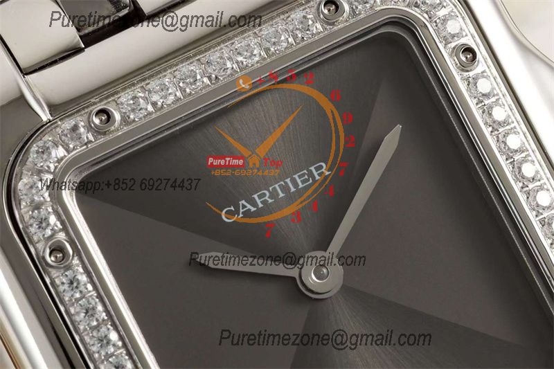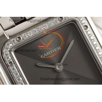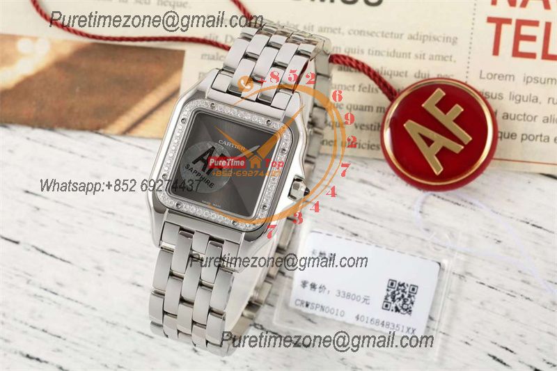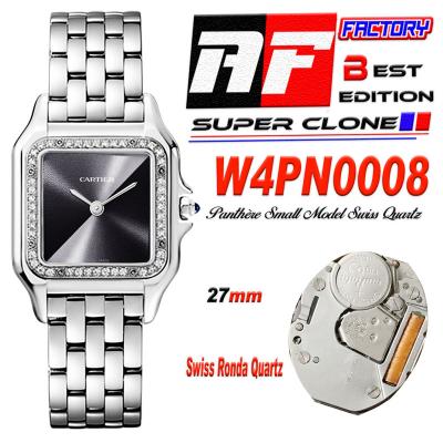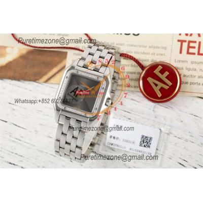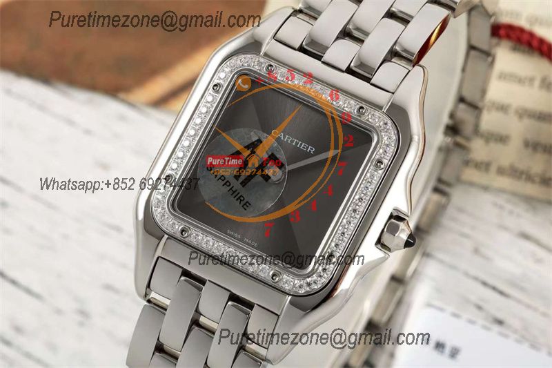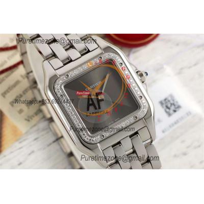 Panthère Medium Model W4PN0008 Ronda Quartz Womens Watch Best Edition AF 27 Diamond Bezel Gray Dial SS Bracelet Ladies