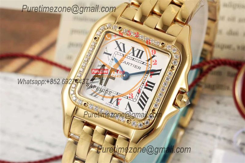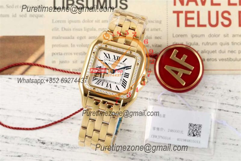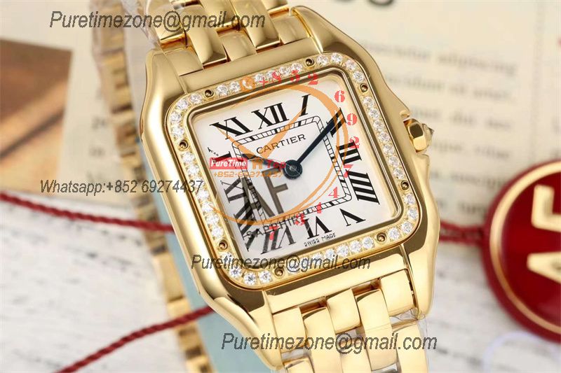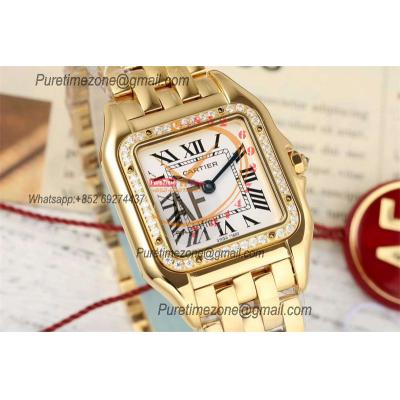 Panthère Medium Model WGPN0009 Ronda Quartz Womens Watch Best Edition AF 27 Diamond Bezel YG White Dial SS Bracelet