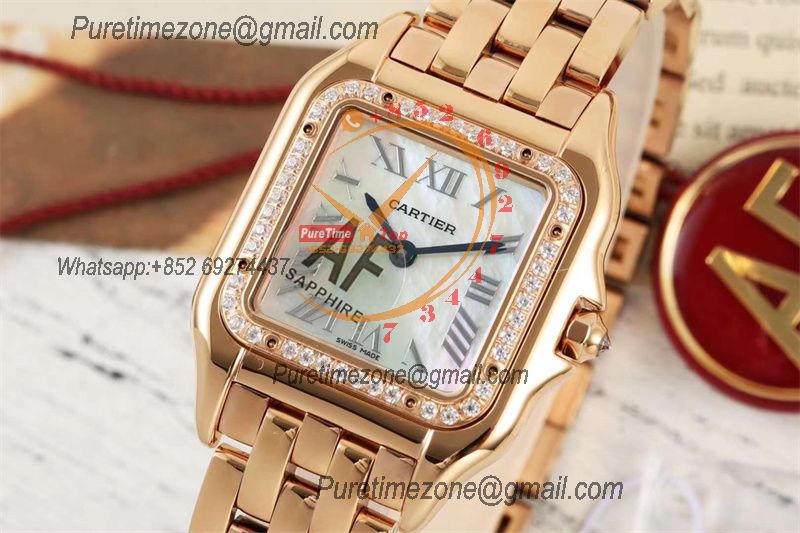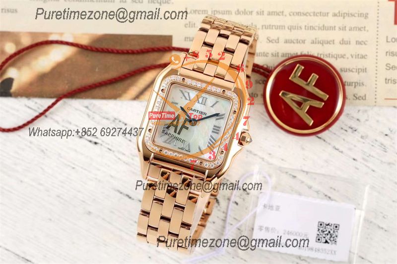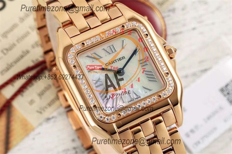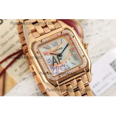 Panthère Medium Model WGPN0009 Ronda Quartz Womens Watch Best Edition AF RG Diamond Bezel 27 MOP Dial SS Bracelet