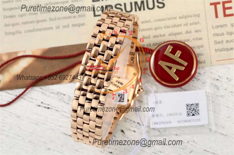 Panthère Small Model W3PN0006 Ronda Quartz Womens Watch Best Edition AF 22mm RG Diamonds Bezel White Dial SS Bracelet