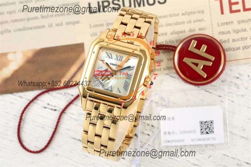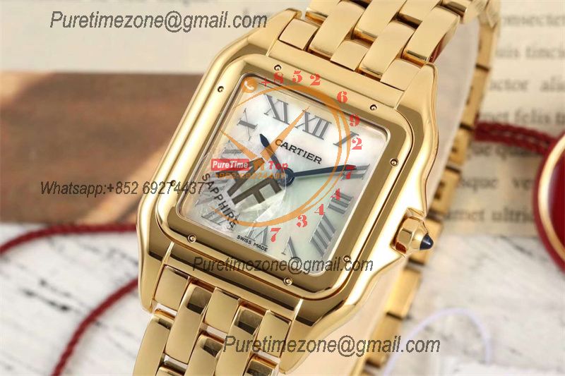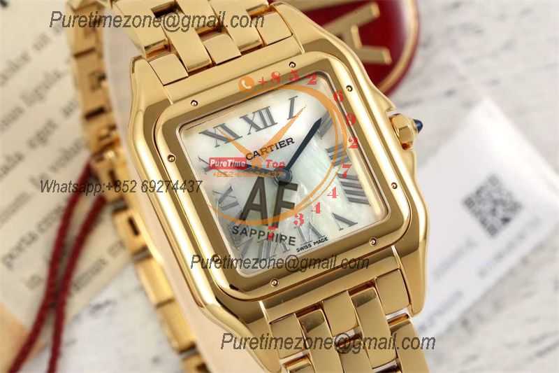 Panthère Medium Model WGPN0009 Ronda Quartz Womens Watch Best Edition AF YG 27mm MOP Dial SS Bracelet