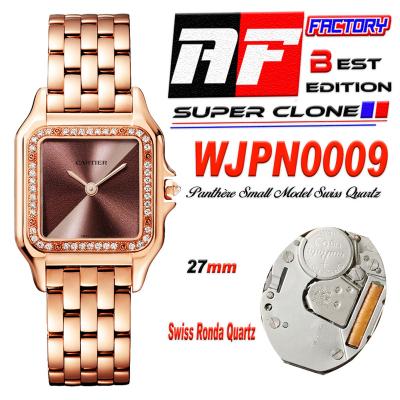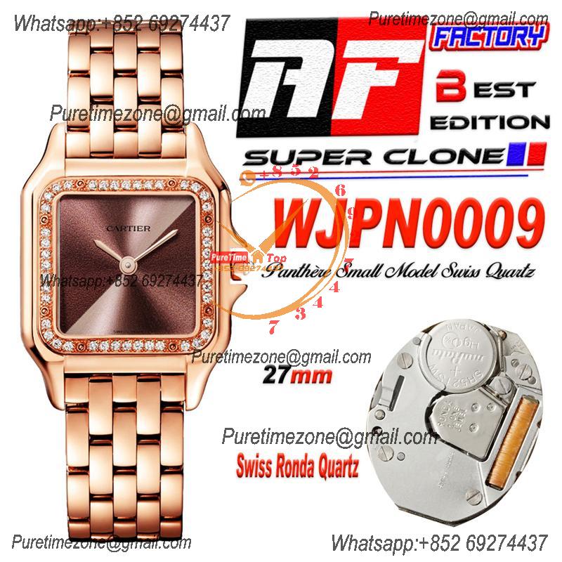 Panthère Small Model WJPN0035 Ronda Quartz Womens Watch Best Edition AF 22mm RG Diamond Bezel Brown Dial SS Bracelet