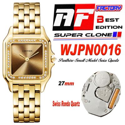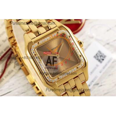 Panthère Medium Model WSPN0007 Ronda Quartz Womens Watch Best Edition AF YG 27 Diamond Gold Dial SS Bracelet Ladies