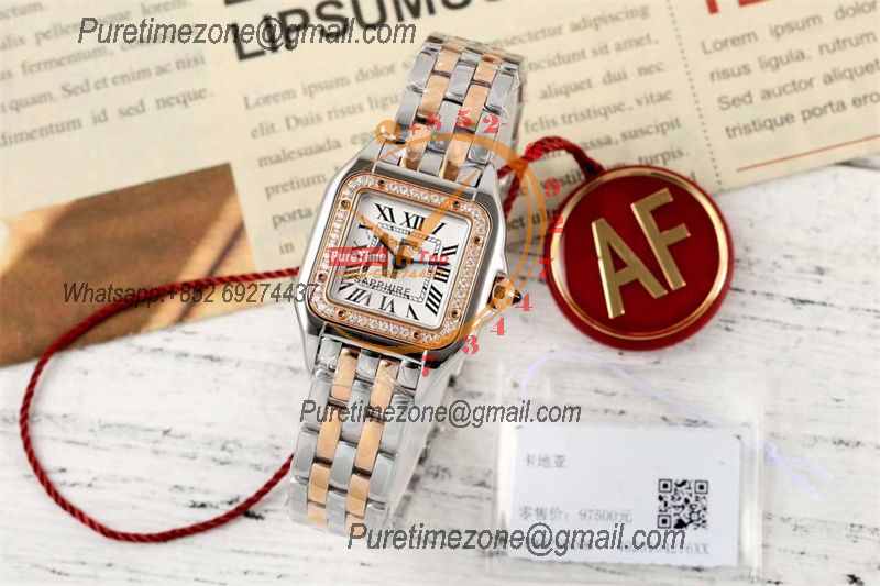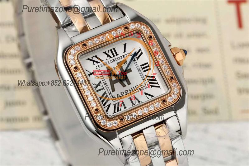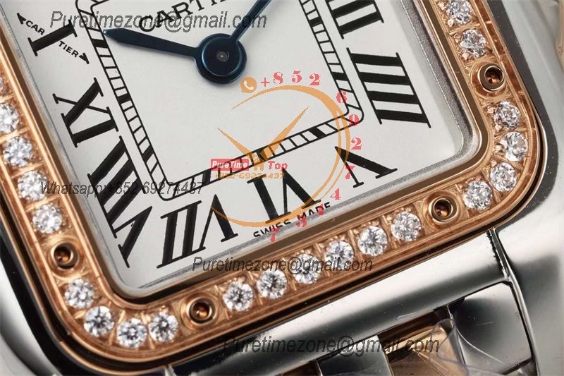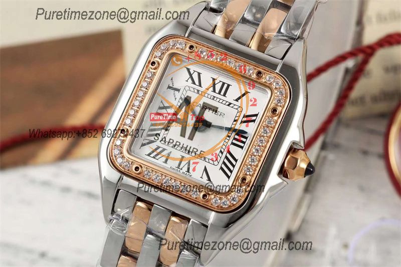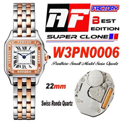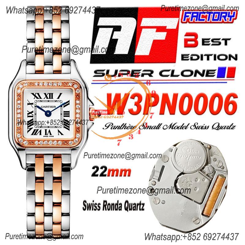 Panthère Small Model W3PN0006 Ronda Quartz Womens Watch Best Edition AF 22mm RG Diamonds Bezel White Dial SS Bracelet