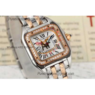 Panthère Small Model W2PN0006 Ronda Quartz Womens Watch Best Edition AF 22 YG Diamonds Bezel White Dial SS Bracelet