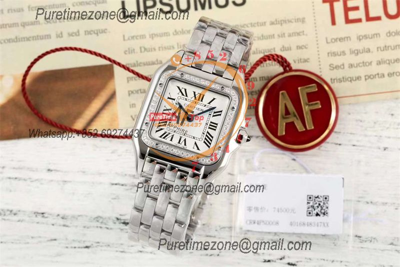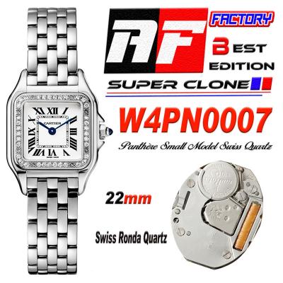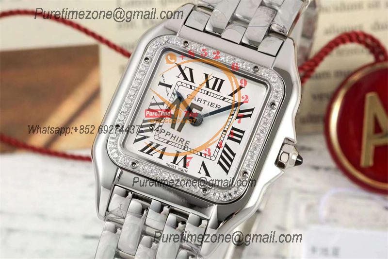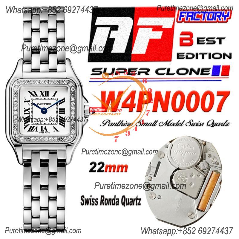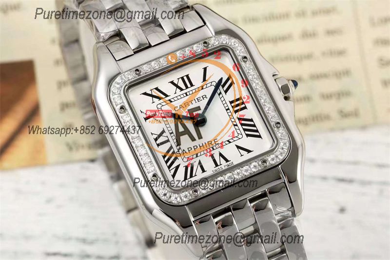 Panthère Small Model W4PN0007 Ronda Quartz Womens Watch Best Edition AF 22 Diamonds Bezel White Dial SS Bracelet Ladies