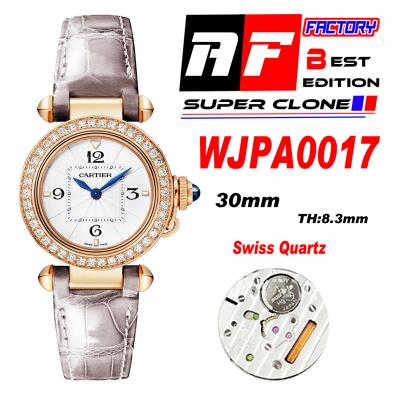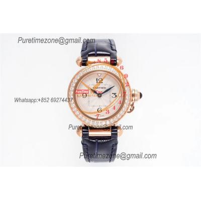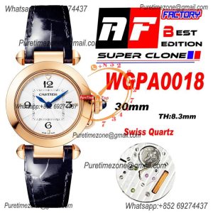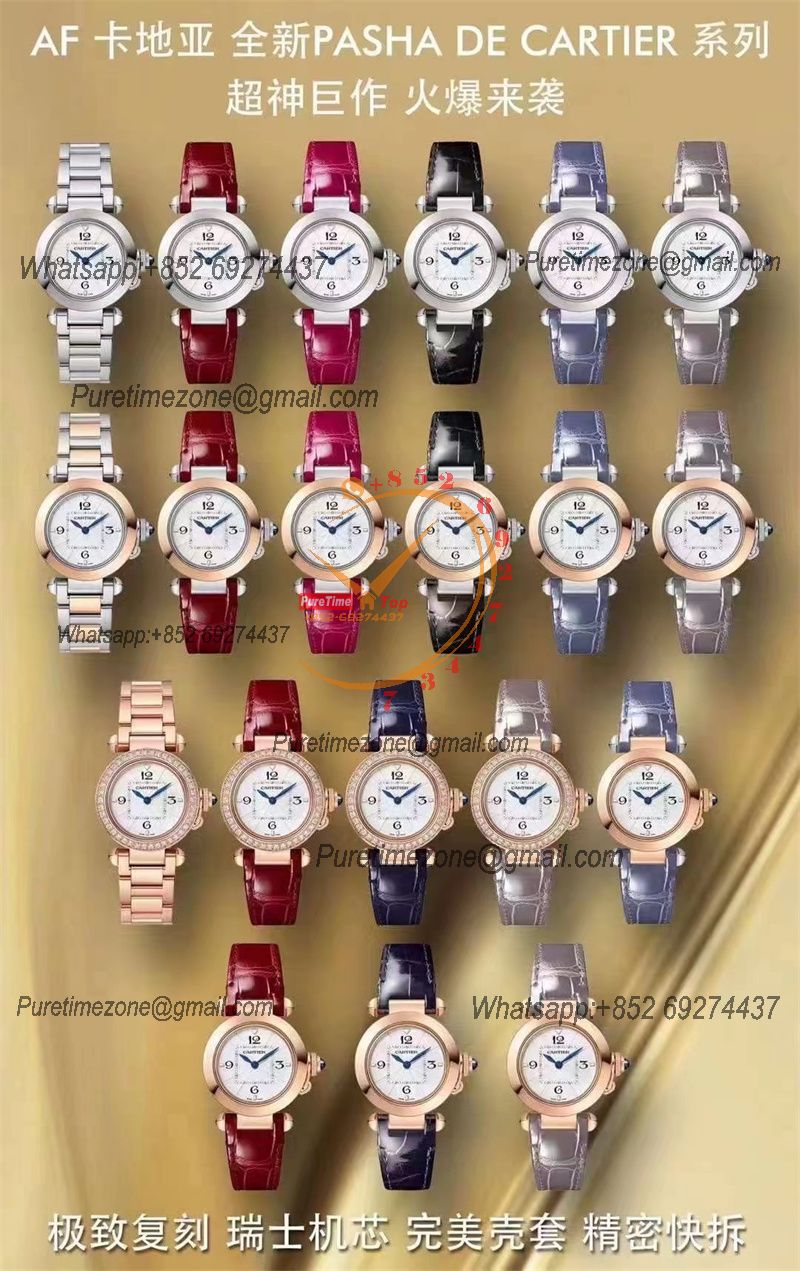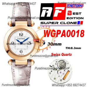 Home Cartier Pasha de Cartier Pasha WJPA0017 Swiss Quartz Womens Watch Best Edition AF 30mm RG Diamonds Bezel White Textured Dial Gray Leather