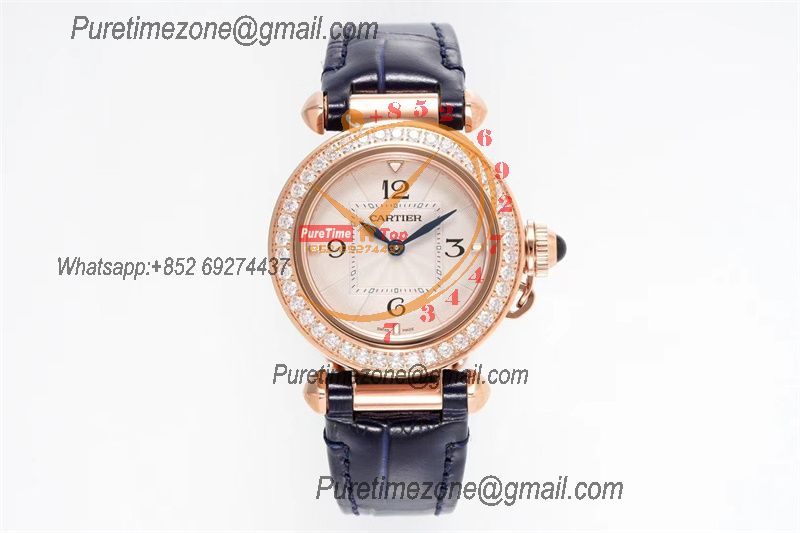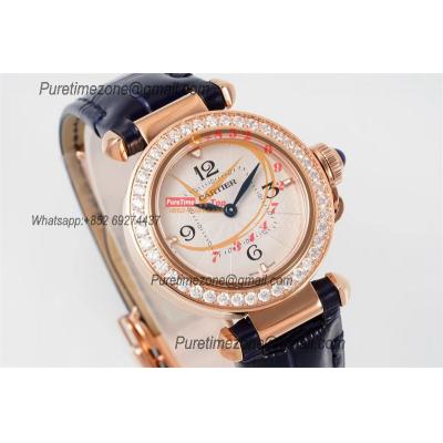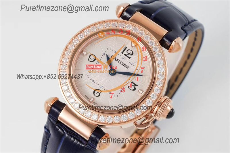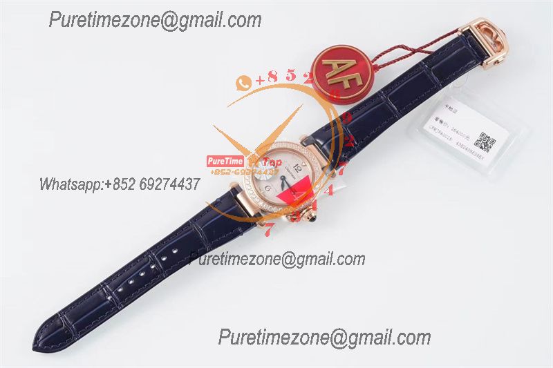 Pasha WJPA0017 Swiss Quartz Womens Watch Best Edition AF 30mm RG Diamonds Bezel White Textured Dial Gray Leather