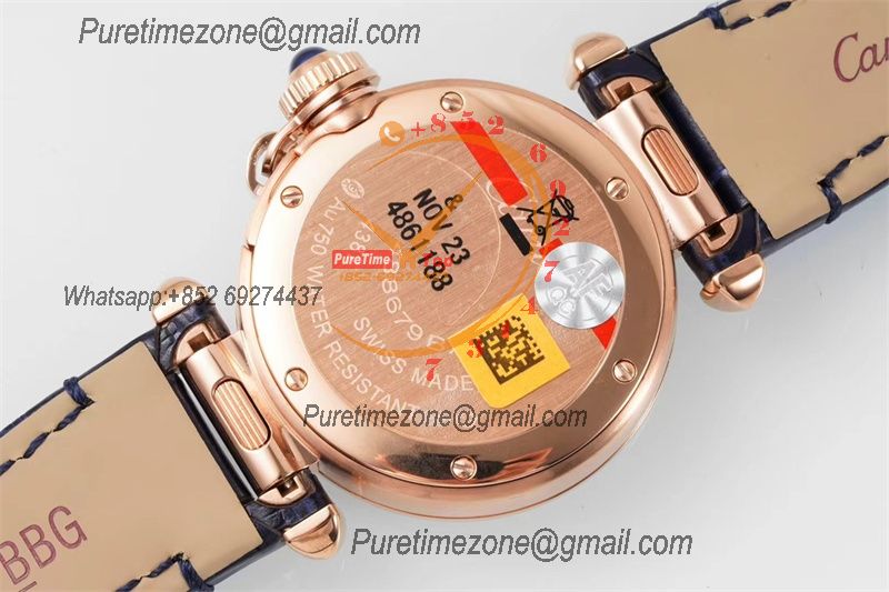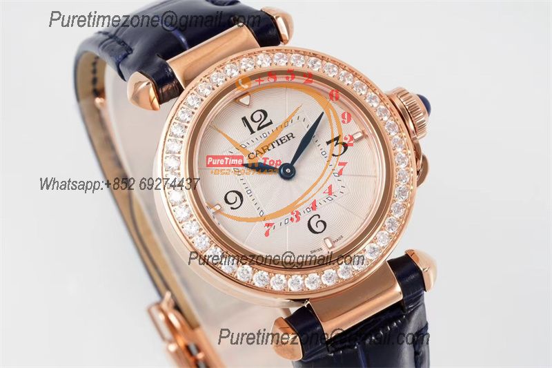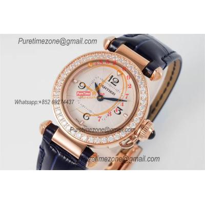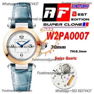 Pasha W2PA0007 Swiss Quartz Womens Watch Best Edition AF 30mm Two Tone RG White Textured Dial Blue Leather Strap