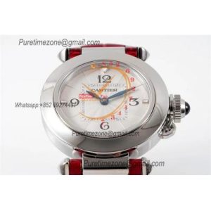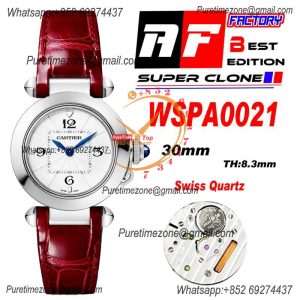 Pasha WSPA0021 Swiss Quartz Womens Watch Best Edition AF 30mm White Textured Dial Red Leather Strap