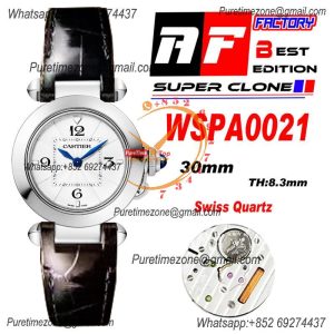 Pasha WSPA0021 Swiss Quartz Womens Watch Best Edition AF 30mm White Textured Dial Gray Leather Strap