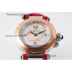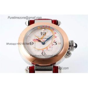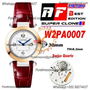 Pasha W2PA0007 Swiss Quartz Womens Watch Best Edition AF 30mm Two Tone RG White Textured Dial Red Leather Strap