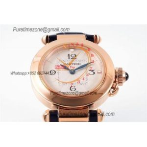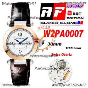 Pasha W2PA0007 Swiss Quartz Womens Watch Best Edition AF 30mm Two Tone RG White Textured Dial Black Leather Strap