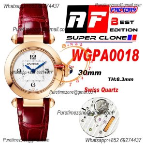 Pasha WGPA0018 Swiss Quartz Womens Watch Best Edition AF 30mm RG White Textured Dial Red Leather Strap