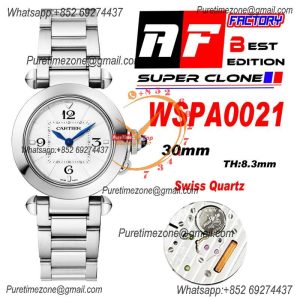 Pasha WSPA0021 Swiss Quartz Womens Watch Best Edition AF 30mm White Textured Dial SS Bracelet