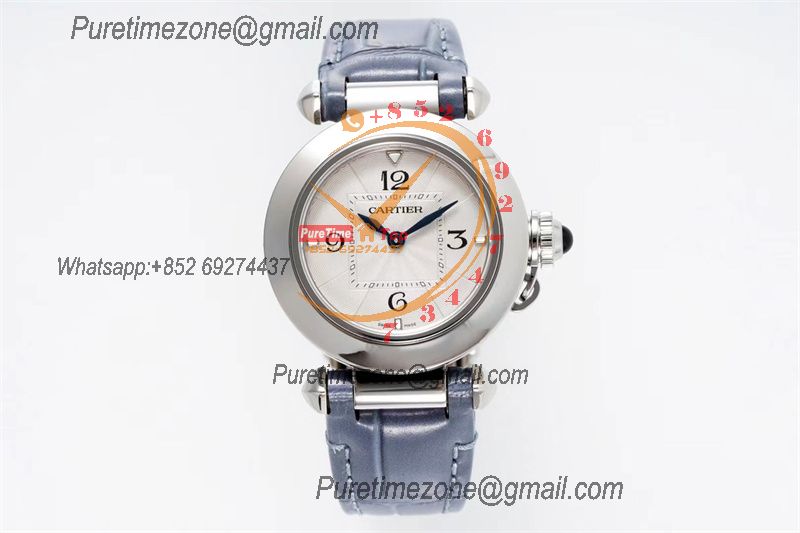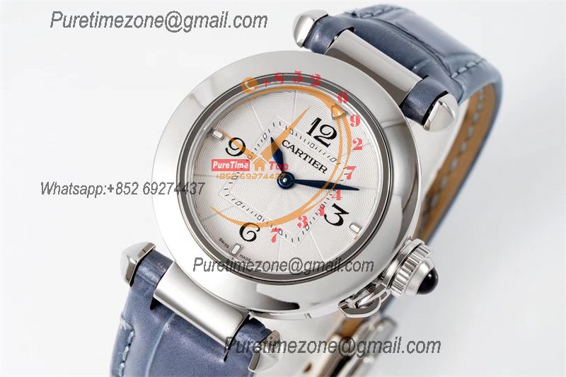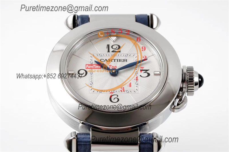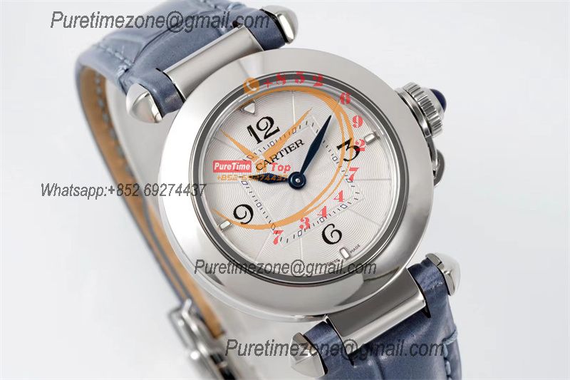 Home Cartier Pasha de Cartier Pasha WSPA0021 Swiss Quartz Womens Watch Best Edition AF 30mm White Textured Dial Blue Leather Strap
