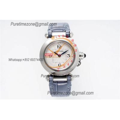 Home Cartier Pasha de Cartier Pasha WSPA0021 Swiss Quartz Womens Watch Best Edition AF 30mm White Textured Dial Blue Leather Strap