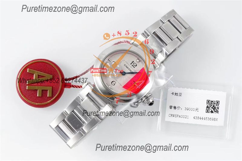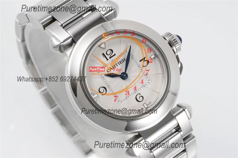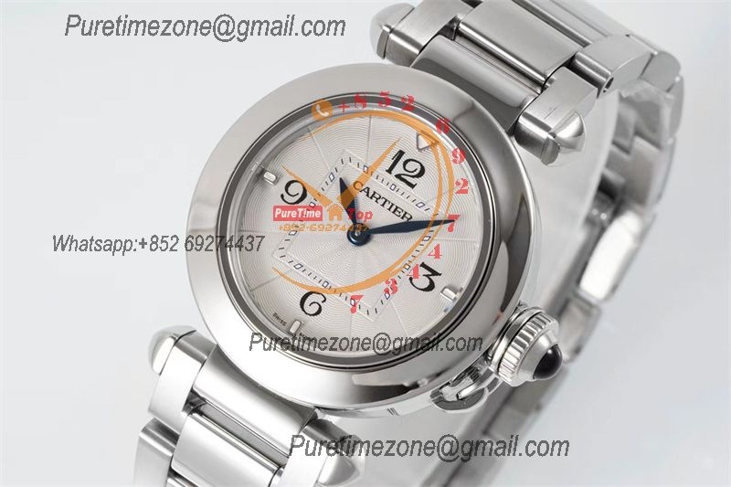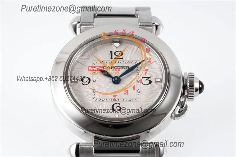 Home Cartier Pasha de Cartier Pasha WSPA0021 Swiss Quartz Womens Watch Best Edition AF 30mm White Textured Dial SS Bracelet