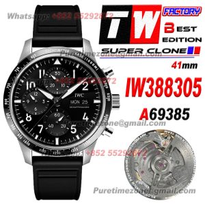 Performance Chronograph Amg Pilot’s IW388306 Automatic Mens Watch Super Clone TWF Black Dial Black Rubber Strap A7750