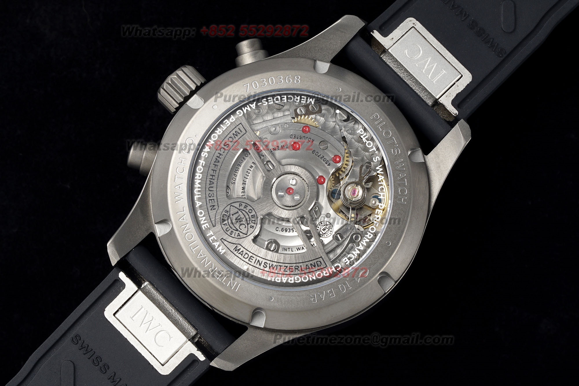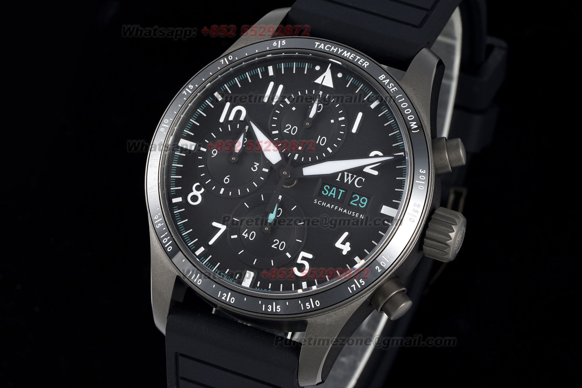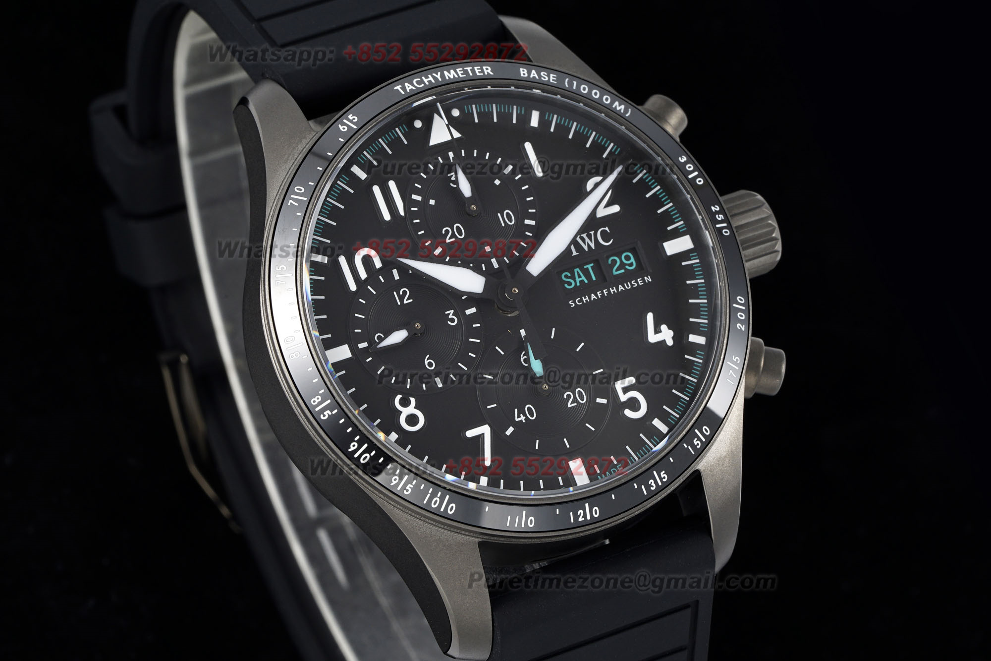 Pilot AMG F1 Team Chronograph IW388305 Automatic Mens Watch Super Clone BLSF Titanium Black Dial Rubber Strap SA69385