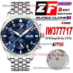 Pilot Chronograph IW377717 Automatic Mens Watch Super Clone ZF 43mm RG Blue Dial SS Bracelet A7750 $650.00 $550.00