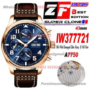Pilot Chronograph IW377721 Automatic Mens Watch Super Clone ZF 43mm RG Blue Dial Brown Leather Strap A7750 $630.00 $530.00