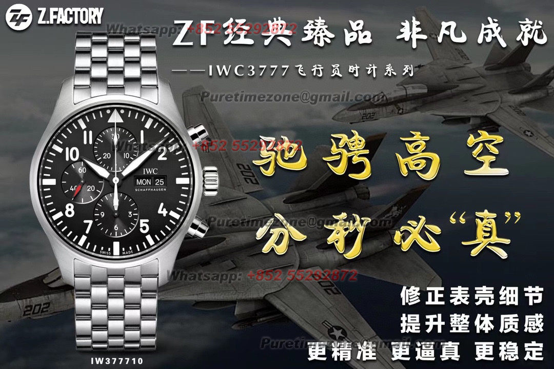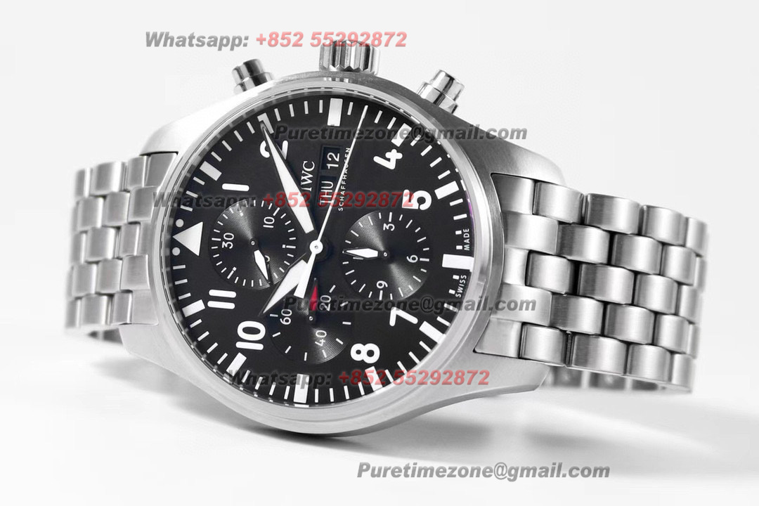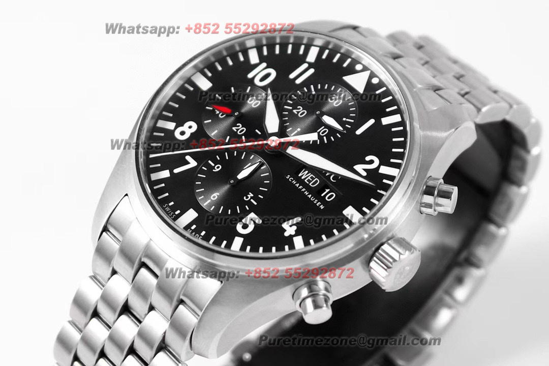Pilot Chronograph IW377710Automatic Mens Watch Super Clone ZF 43mm RG Black Dial SS Bracelet A7750