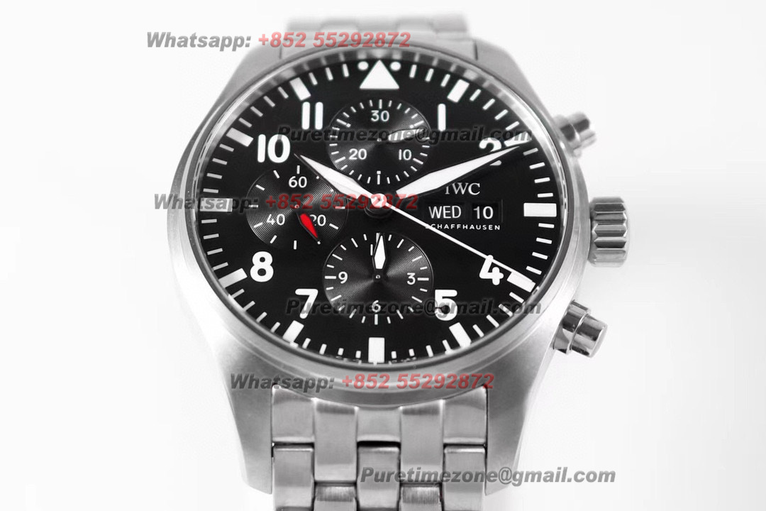 Home IWC Pilot Pilot Chronograph IW377710Automatic Mens Watch Super Clone ZF 43mm RG Black Dial SS Bracelet A7750