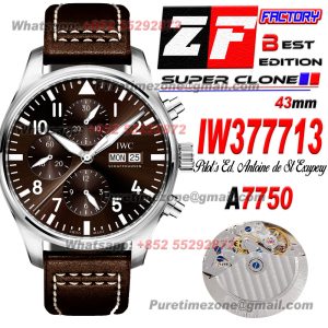 Pilot Chronograph IW377713 Automatic Mens Watch Super Clone ZF 43mm Brown Dial Brown Leather Strap A7750 $630.00 $530.00