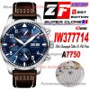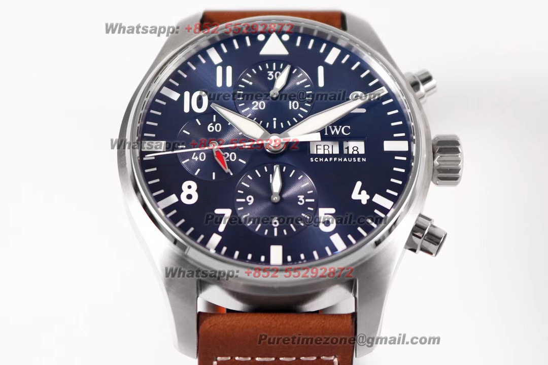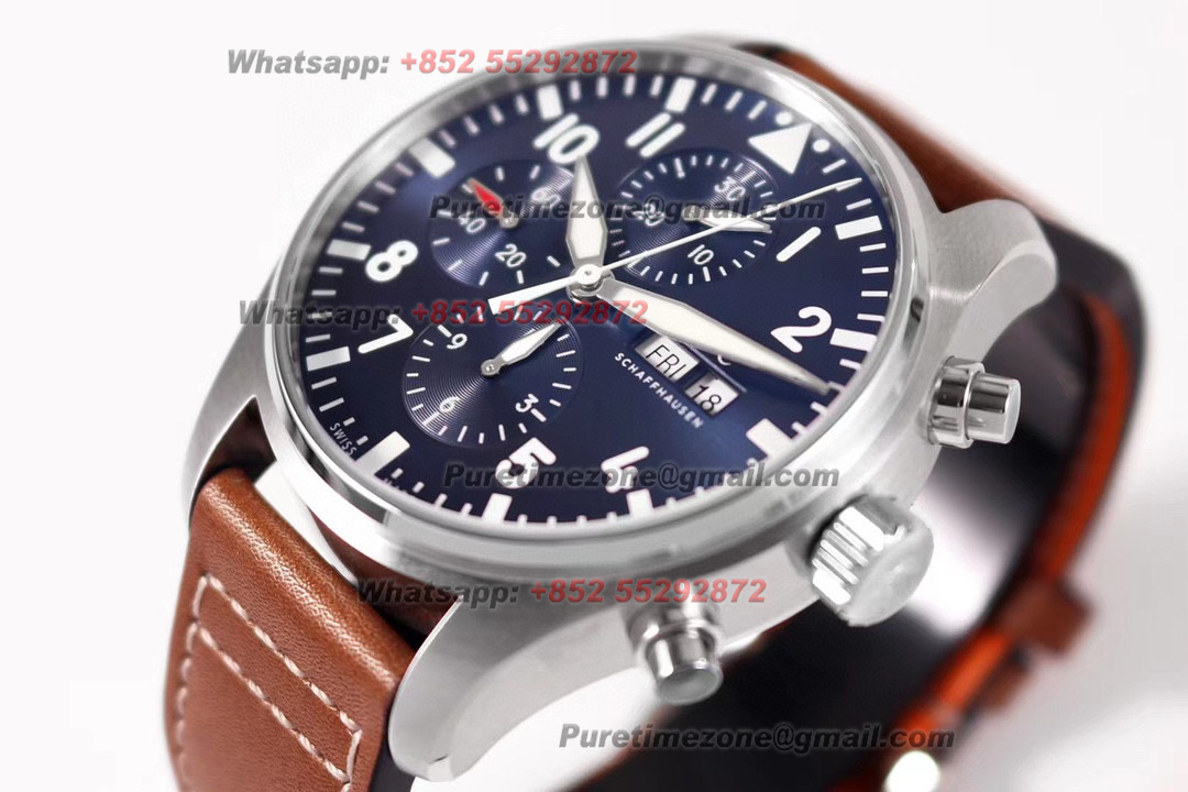 Pilot Chronograph IW377714 Automatic Mens Watch Super Clone ZF 43mm Blue Dial Brown Leather Strap A7750