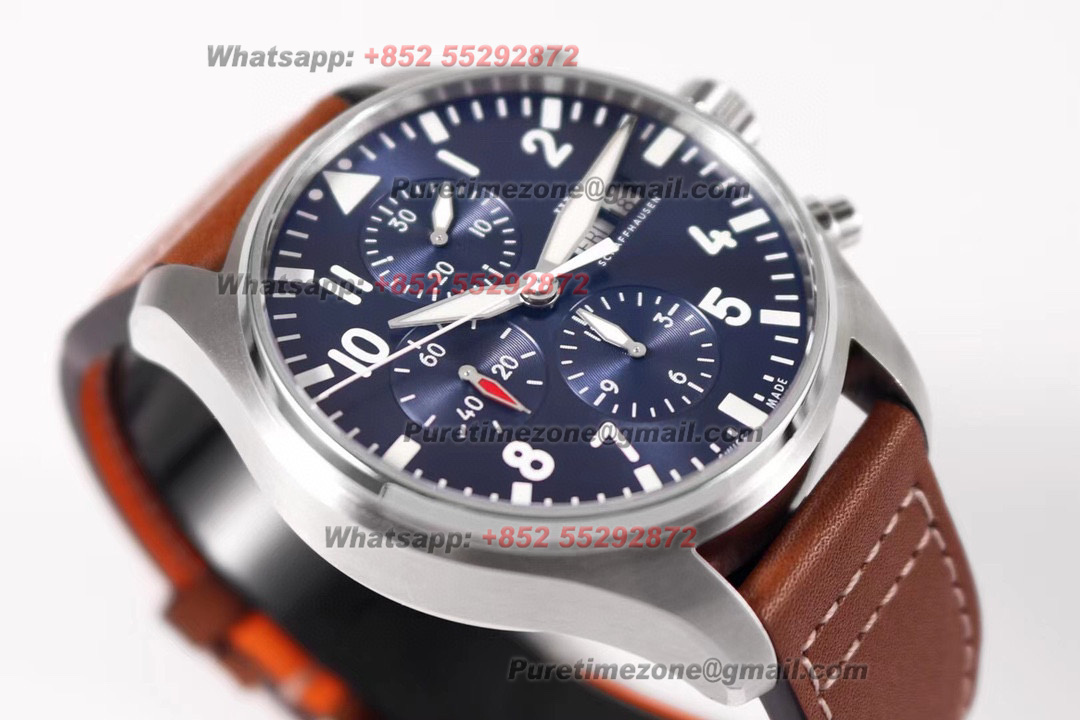 Pilot Chronographe IW388101 Automatic Mens Watch Super Clone APSF Blue Dial Leather Strap SA69385