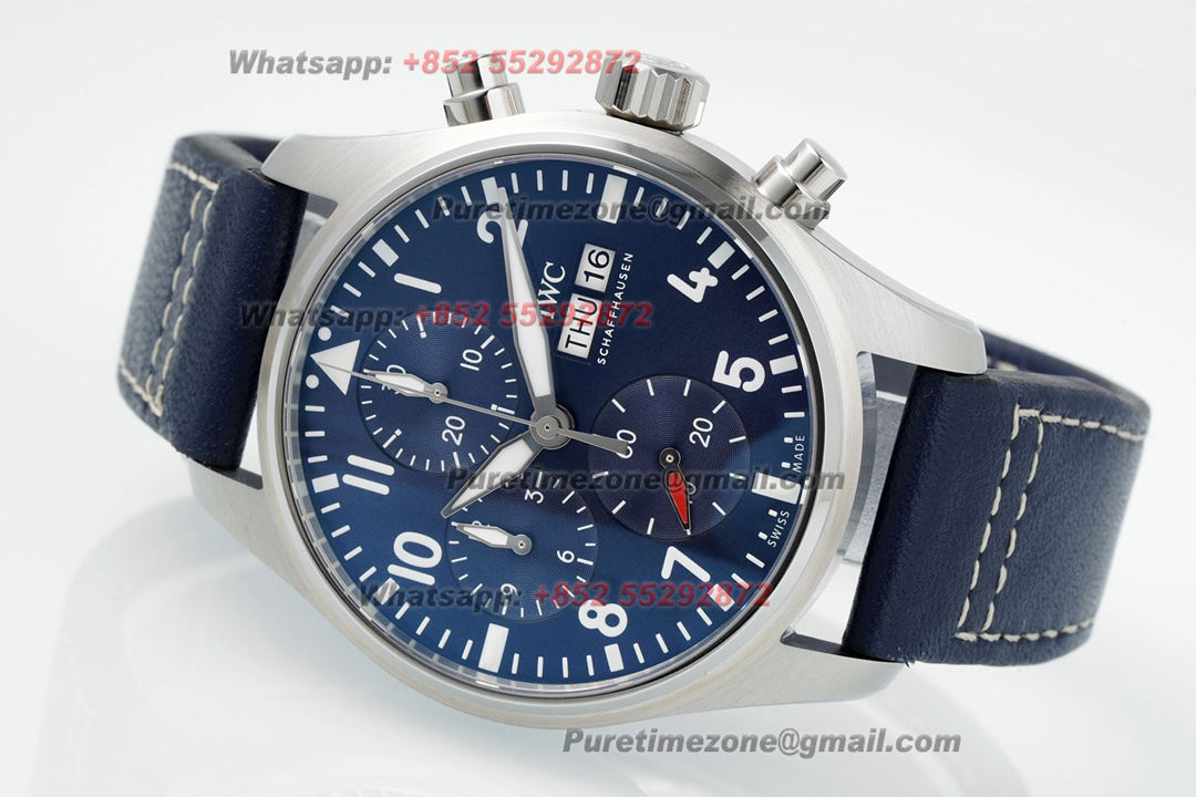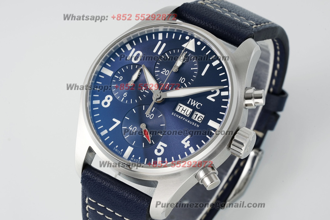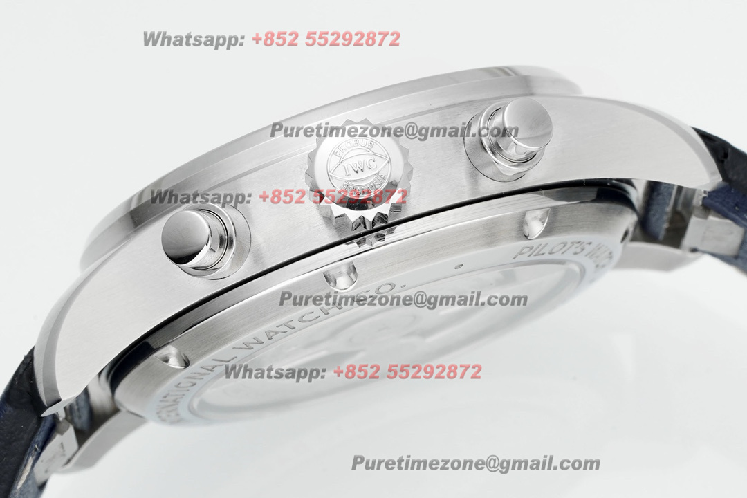 Pilot Chronographe IW388101 Automatic Mens Watch Super Clone APSF Blue Dial Leather Strap SA69385