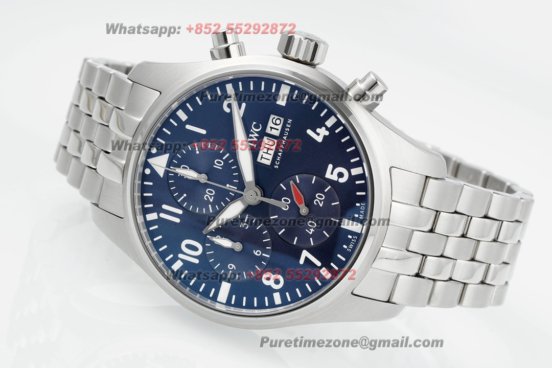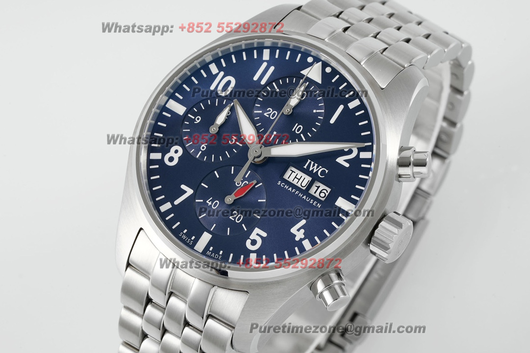 Pilot Chronographe IW388102 Automatic Mens Watch Super Clone APSF Blue Dial SS Bracelet SA69385