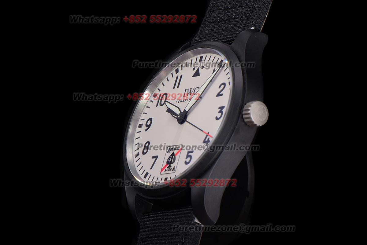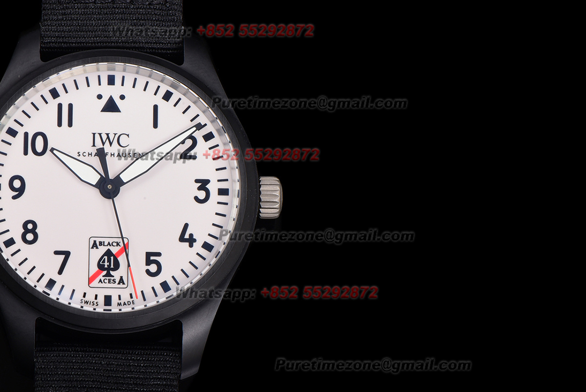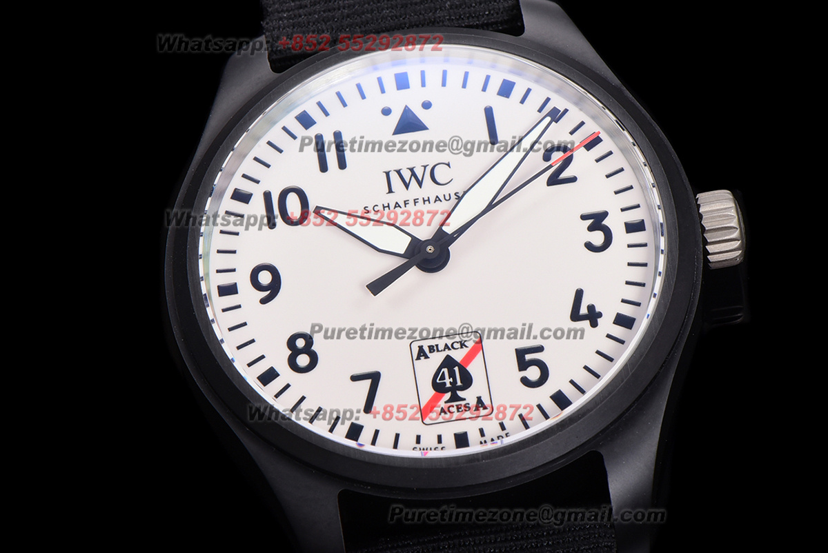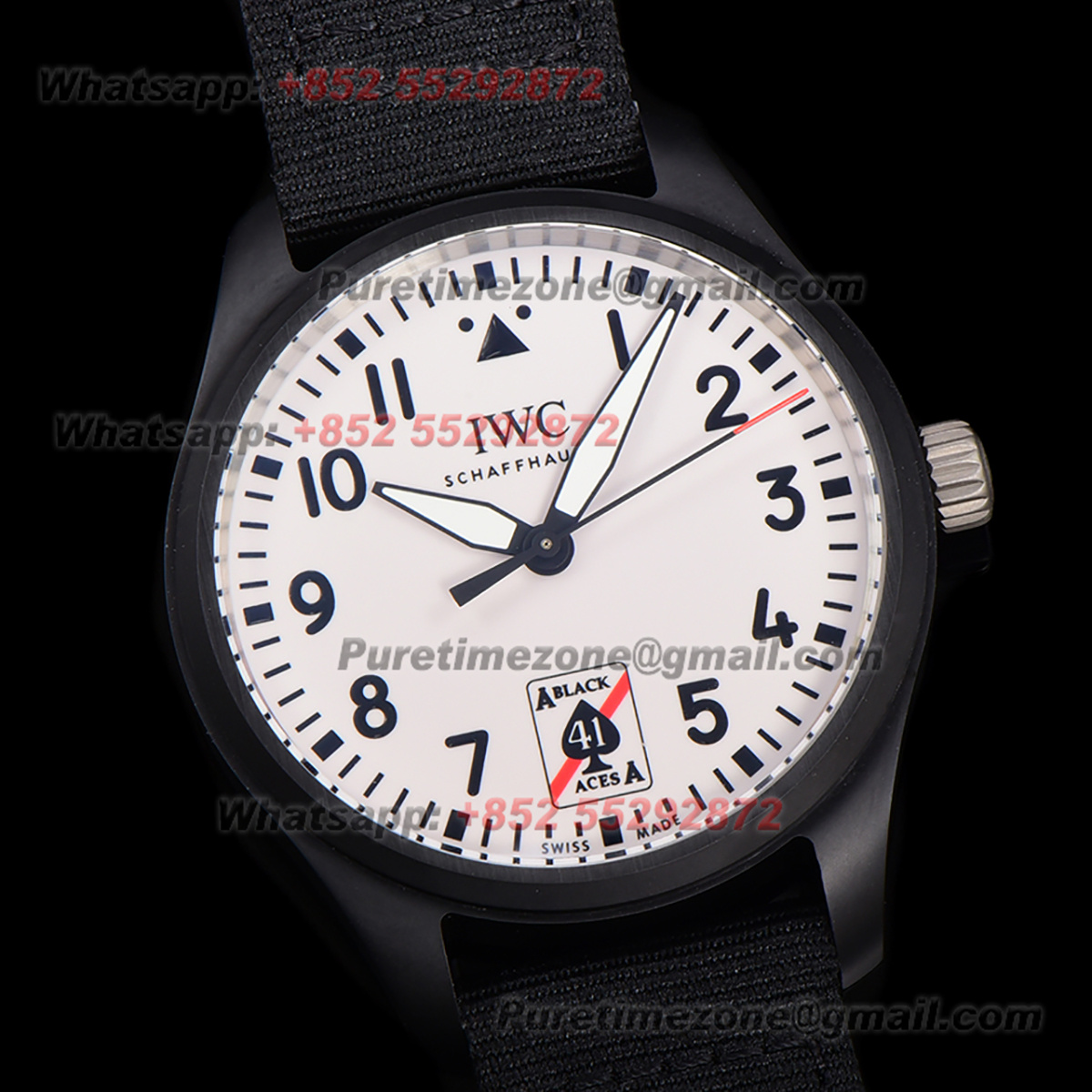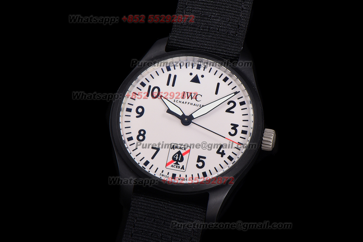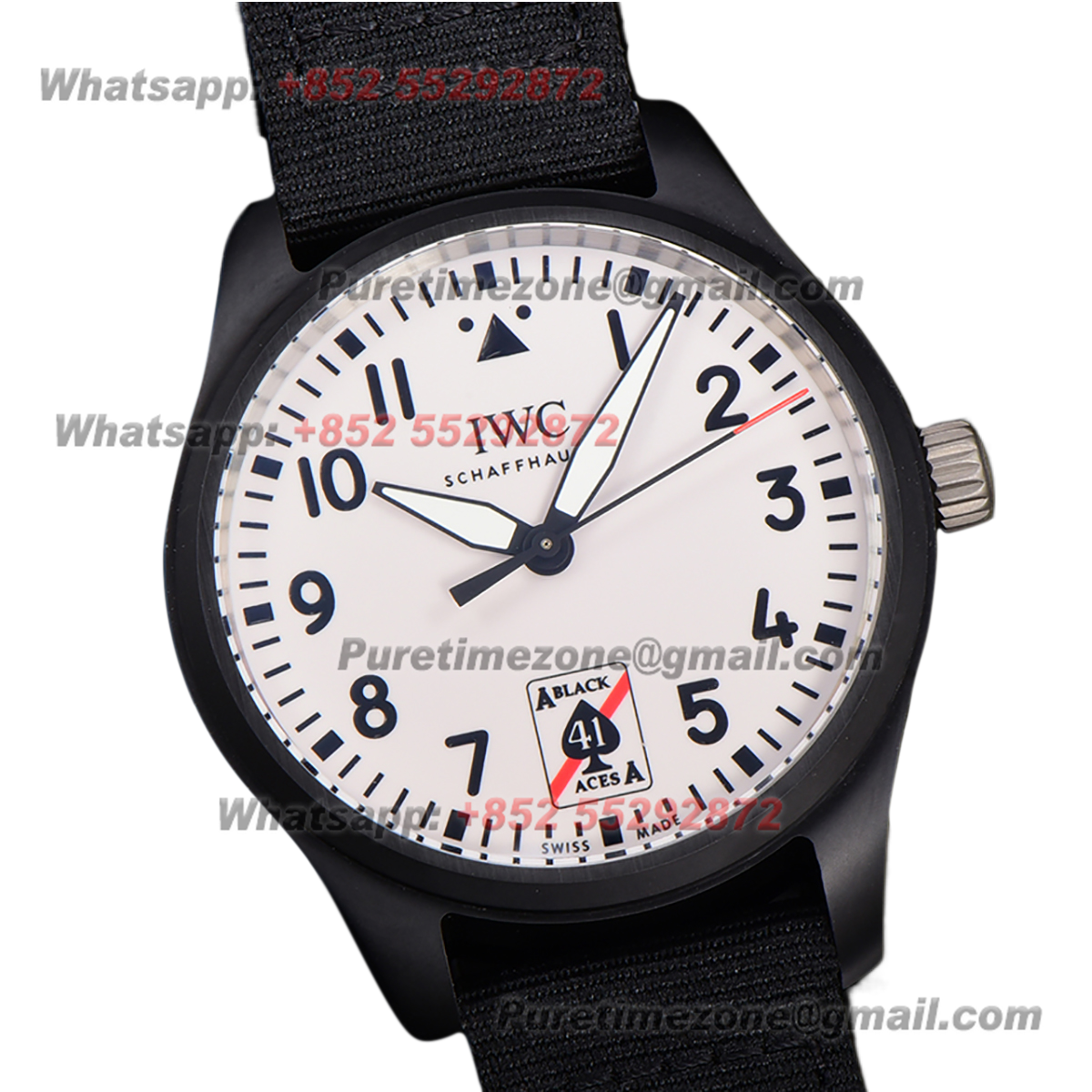 Pilot’s Automatic Black Aces IW326905 Ceramics Titanium Mens Watch Super Clone TWF 41 White Dial Black Nylon Strap M9039