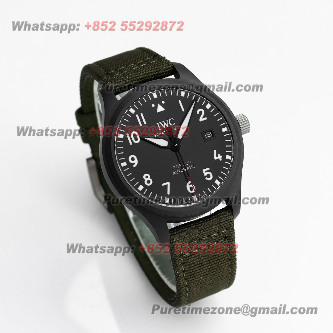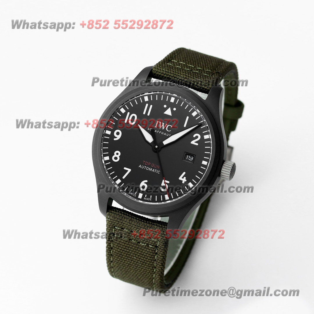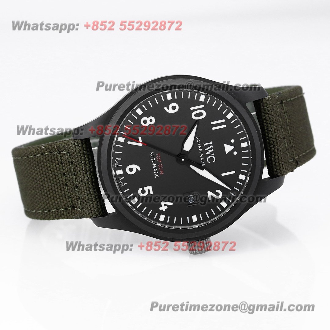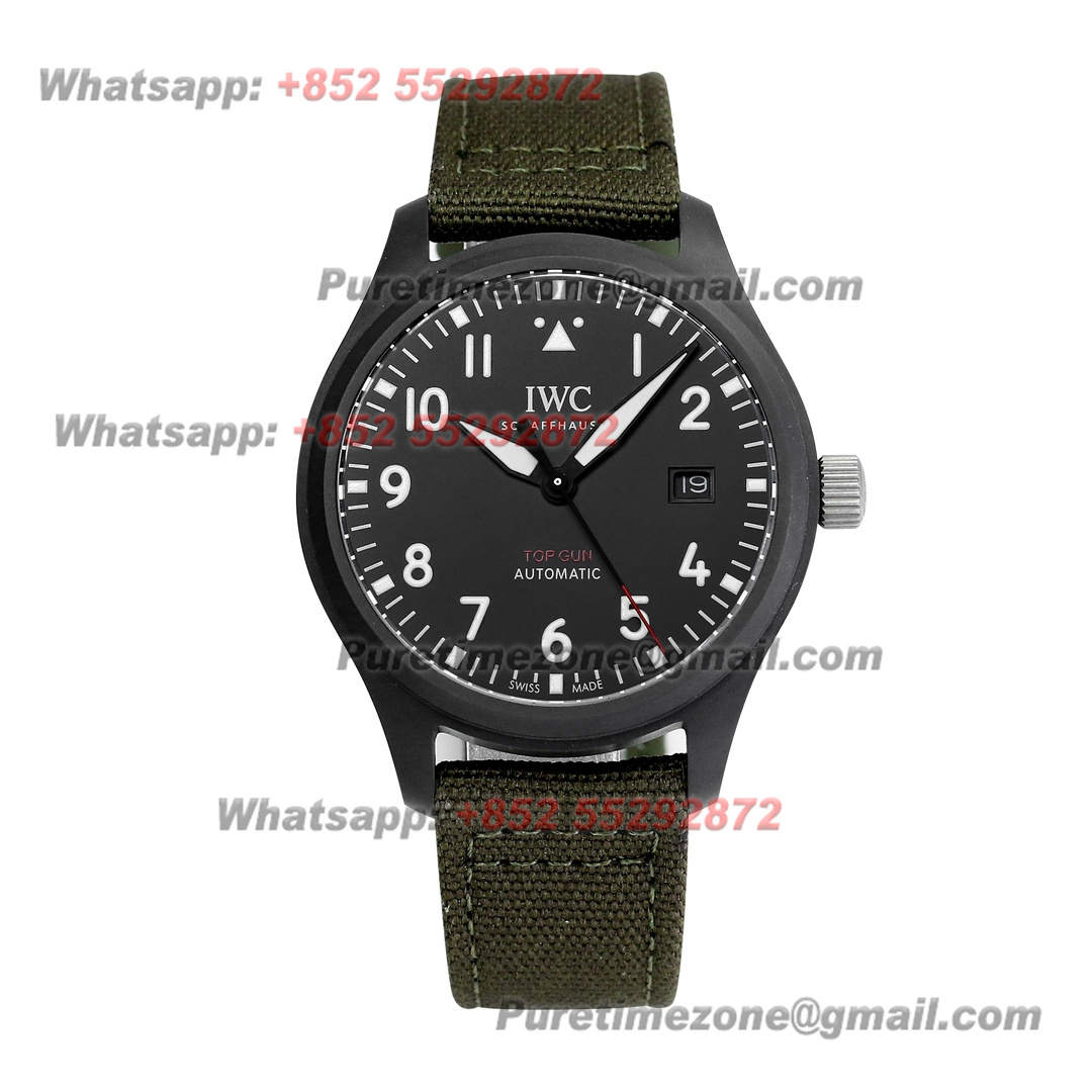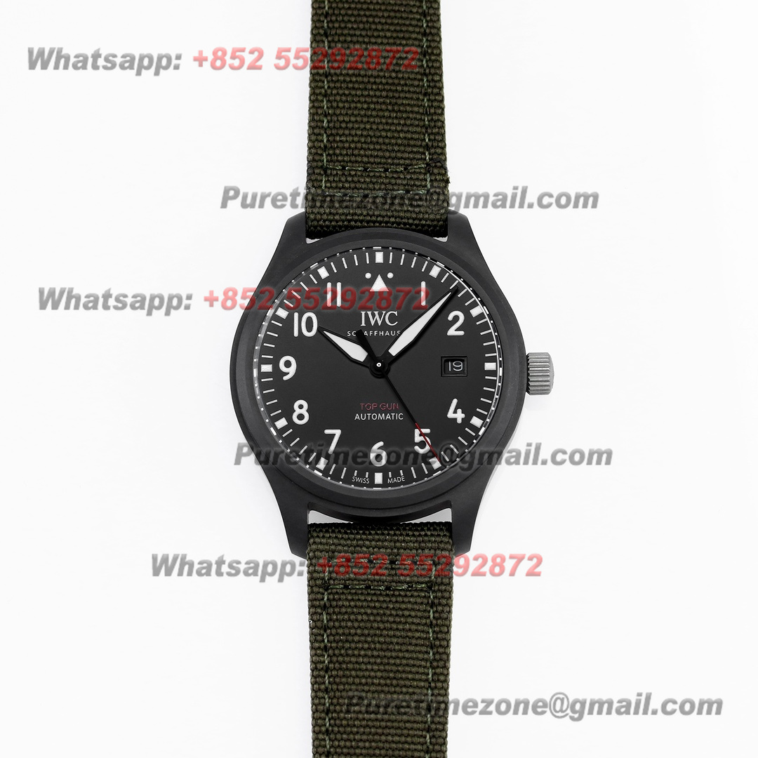 Home IWC Pilot Pilot’s Automatic Top Gun Ceramic IW326906 Automatic Men’s Watch Super Clone XRF 41mm Black Dial Green Nylon Strap M9039