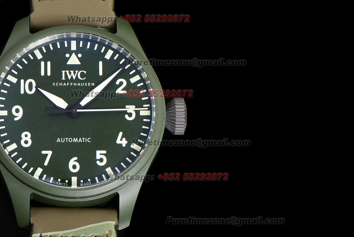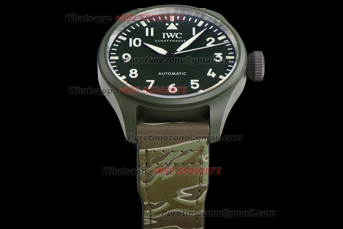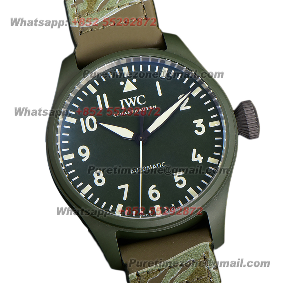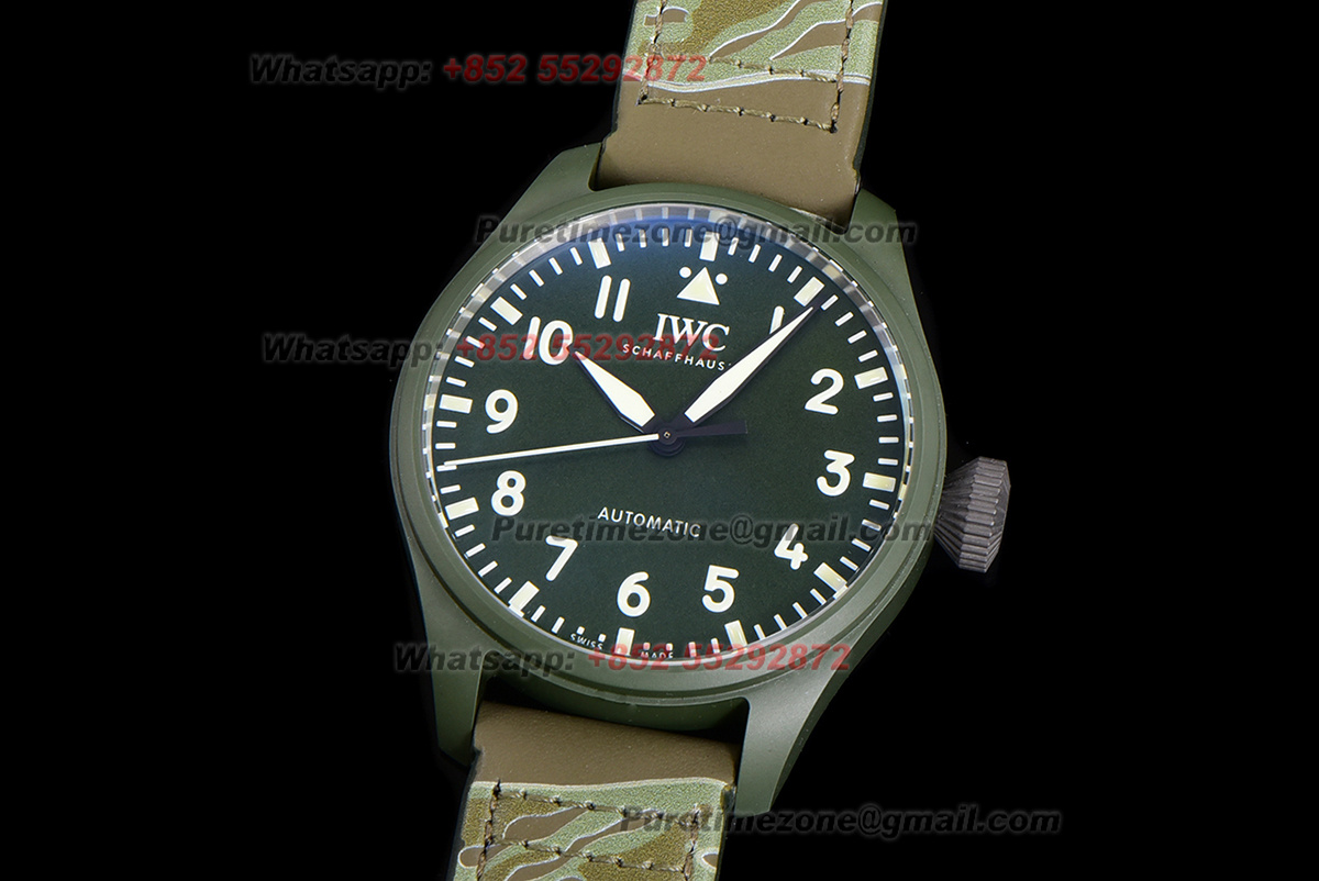 Pilot’s Automatic Top Gun Ceramic& Titanium IW326902 Mens Watch Super Clone TWF 43mm Green Dial Camouflage Leather Strap M9015